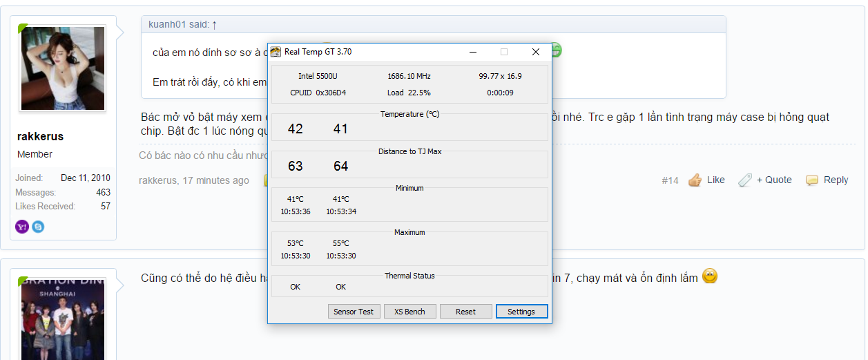 CPU dòng U là tiết kiệm điện mà, hiệu năng thấp nên nhiệt độ ko cao cũng là điều dễ hiểuCao vời vợi đó bác.
