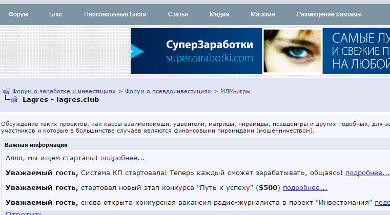 Lagres.club developed a plan and offer 3-piggy bank with a yield of 2.5-3% per day and the ability to withdraw funds at any time. Options for adding or withdrawing funds - perfectmoney, bitcoin, payeer (LIQPAY, VISA, MASTERCARD, QIWI, BITCOIN, W1, INTERNATIONAL VISA & MASTERCARD, transfers in rubles, payment terminals RUSSIA, CONTACT, Yandex, BTC-E CODE, Beeline, MTS, Megafon, MAESTRO / CIRRUS, SWIFT / IBAN, Sberbank, SWIFT / IBAN, SEPA, Alfa-Bank, OKPAY, RUSSIAN STANDARD, Promsvyazbank, Gazprombank, Bank of Moscow)
