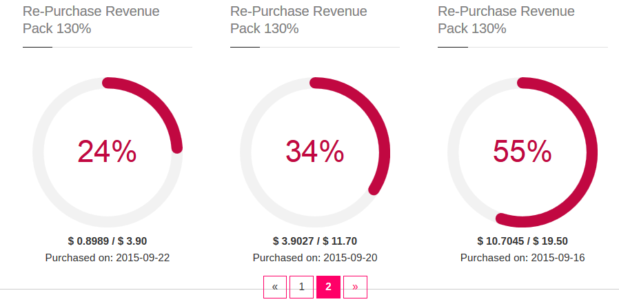 Repurchase Revenue Share 135%, Cost $2 (Minimum Pack purchase limit to buy next Pack: 300)