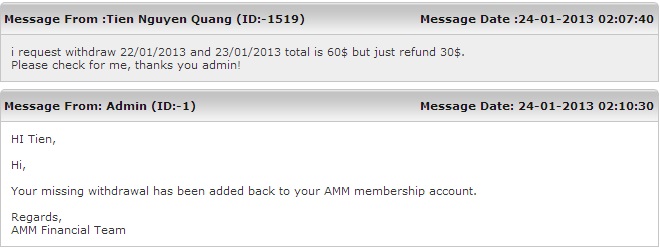 con bà nó. mình rút 2 lần 60$ mà nó mới refund lại có 30$. hic hic. đang gửi ticket xem thế nào
