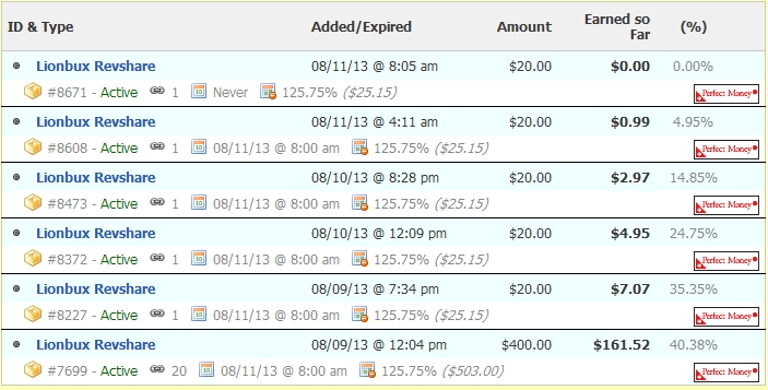 Matrix LionBux - New Revshare kết hợp PTC, 20$/share, 125.75% ROI, chấp nhận PZ, STP, EGP, PM, OKPAY và BIT