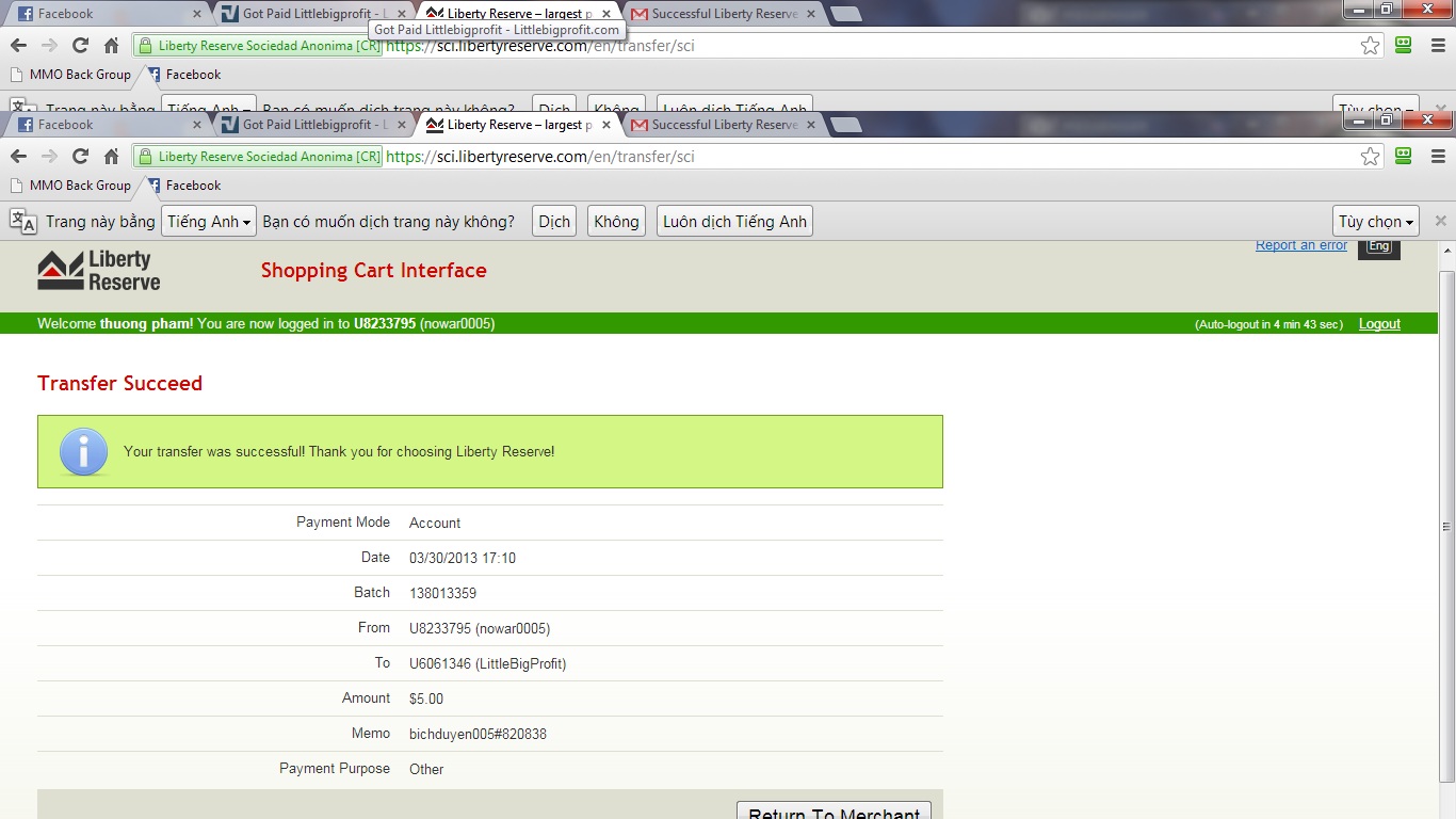 Sr ad mua 5$ LR mà nó gữi có 4.95$ ah nên đầu tư tạm 4$ nha