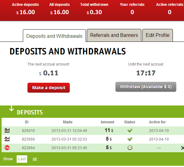 Nếu đấy là tất cả số tiền bạn có thì ko nên vì đây là thể loại Hyip (rủi ro vẫn cao)site run từ khi nào vậy nhỉ ? đang định dep 500 vào mà đắn đo wa