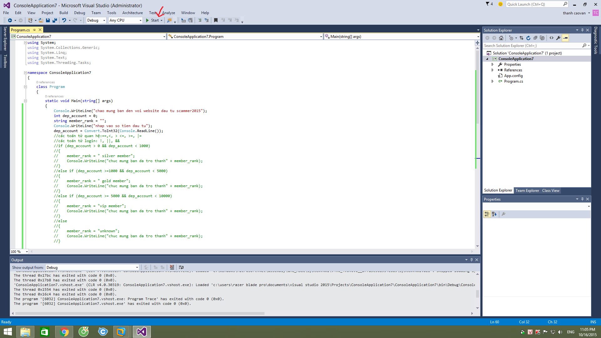 bạn kiểm tra xem đang mở project hay mở file. Project có vùng mở rộng là .sln , hình như bạn chỉ đang mở file class của nó thoi.