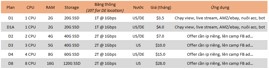 Bạn cần custom plan? Xin hãy liên hệ chúng tôi tại Facebook page LowEndViet .