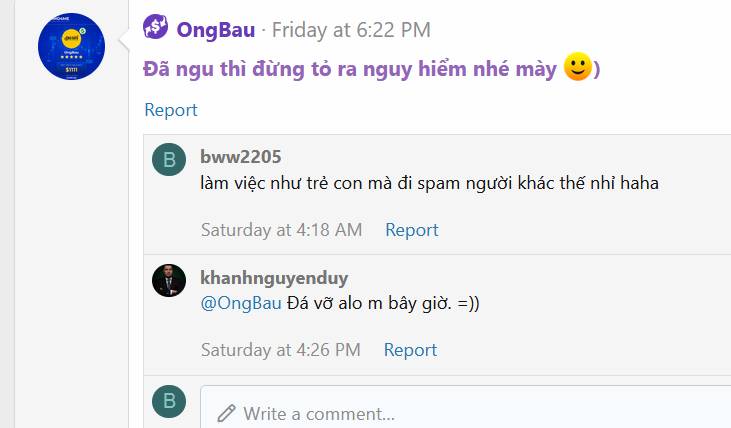 Mấu chốt là người ta pm hỏi có web khác đang hoạt động không để xem rate thì phán là "web tao không cần mày lo". Rồi phán là "mọi người phải TẬP TRUNG vào giúp người bị scam", rồi chả liên quan gì đến thằng code mà cứ liên tục mời bợ đít nó =))