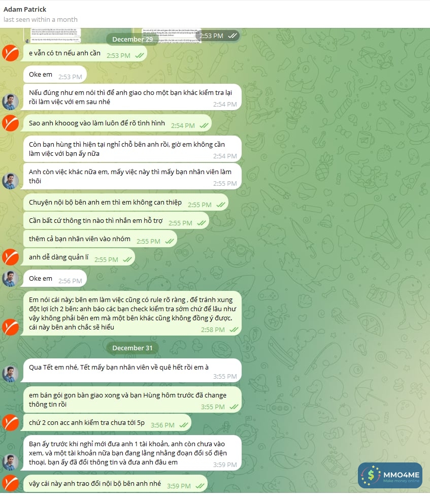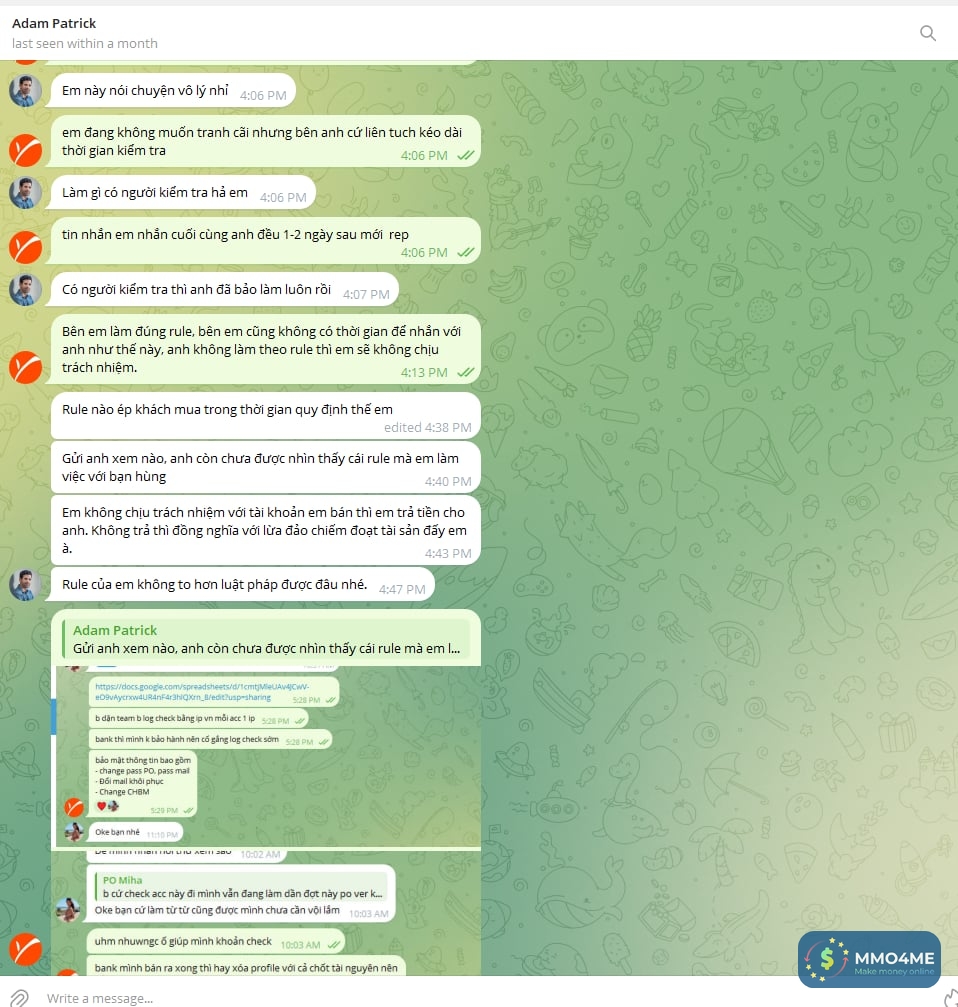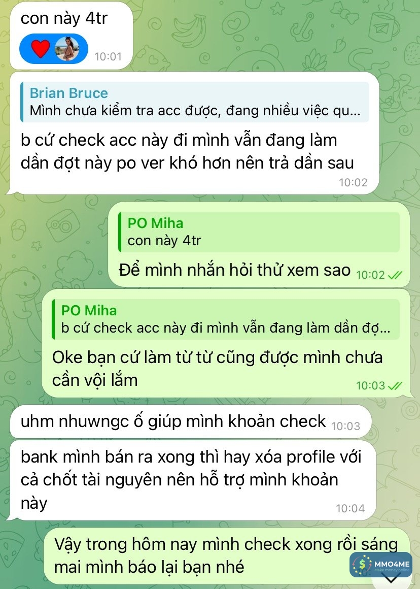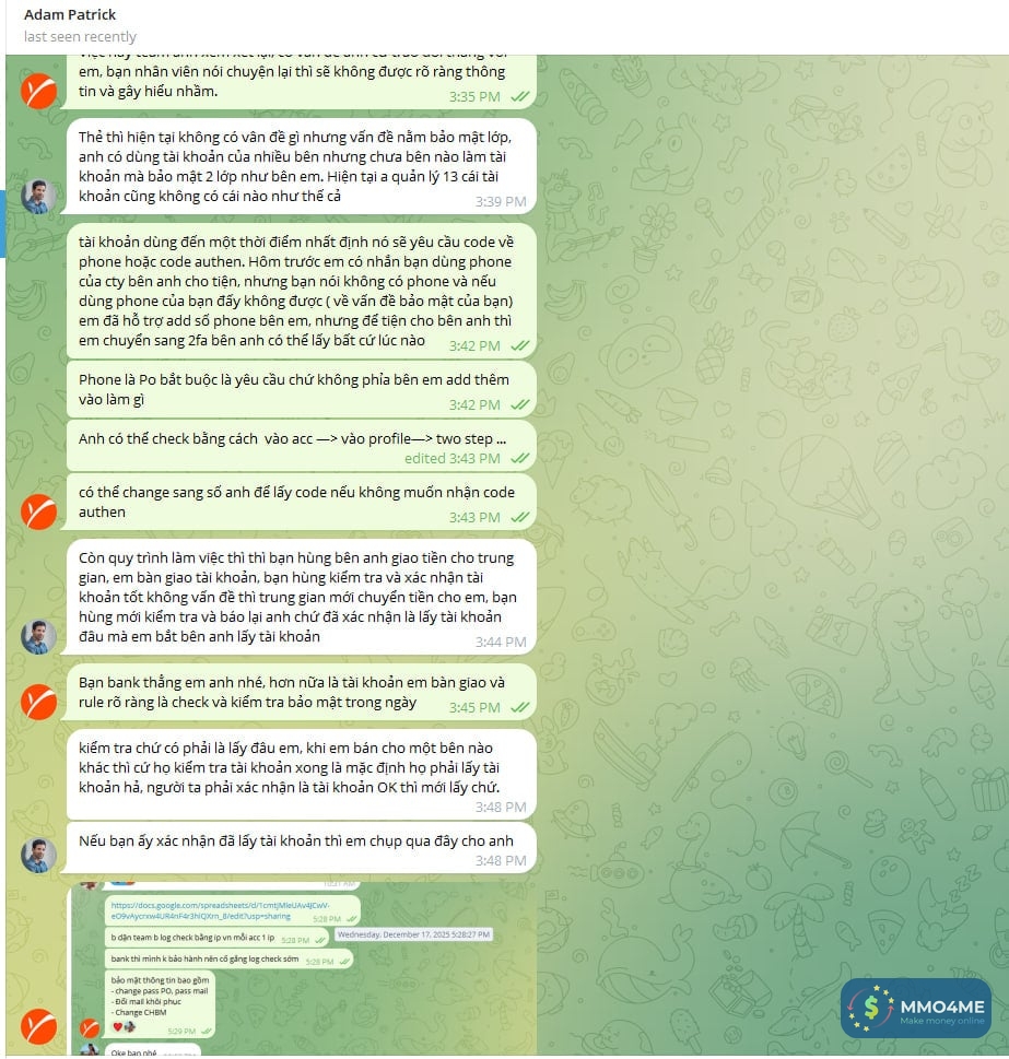 Để em gửi nguyên văn cuộc trò chuyện xem bên nào đúng sai anh nhé bên kia cắt xén nội dung cũng chẳng có gì , em làm việc với bên này cũng như support hết mức rồi. Mua có cái bank thôi kéo dài cả nửa tháng mà bình thường chỉ bảo hành login check acc thôi. Không may có 1 acc bị bật 2fa em cũng đã nói rõ là nền tảng ko cho tắt thì hỗ trợ change và bảo mật rồi thì cứ loằng ngoằng mãi. Tài khoản thì chả có vấn đề gì không biết là lừa đảo cái gì? Em đã hỗ trợ hết khả năng, nên từ thời điểm này em xin dừng làm việc và không muốn liên quan thêm đến vấn đề này nữa.