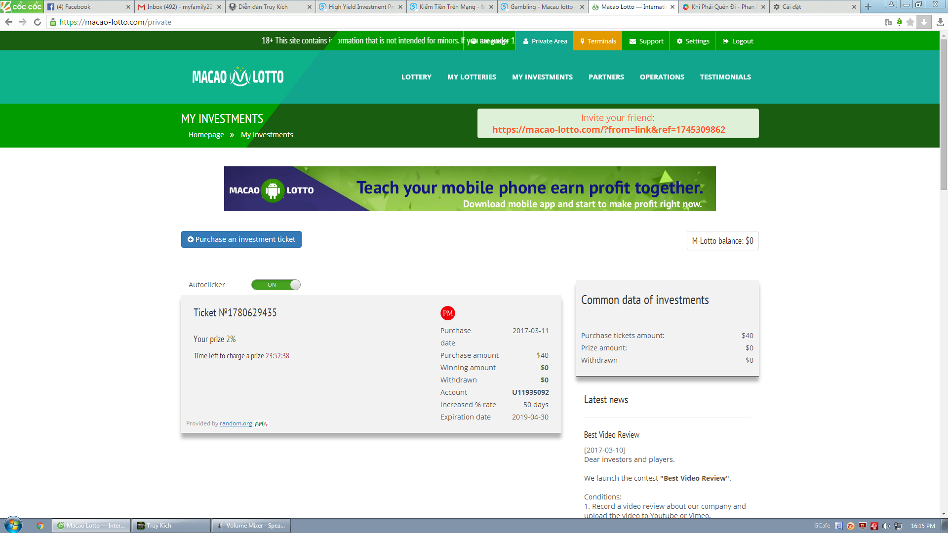 For the time of finding out the reasons, all lotteries and investment tickets have a bonus of + 40% to the amount of purchase and winnings.