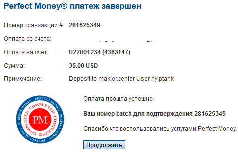 Memo : Shopping Cart Payment. Deposit to makler.center User sqmonitor.
