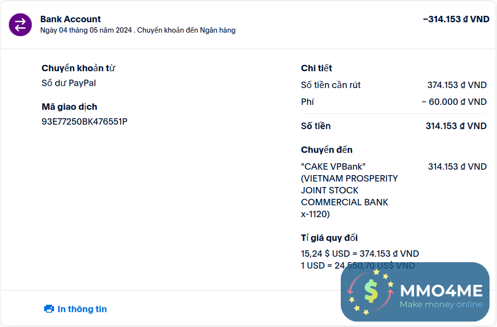 Rút thử 15$ paypal về Cake VPBank mà 1-2 ngày rồi chưa thấy xiền đâu các bác ạ, paypal thì 3-5 phút là báo chuyển khoản thành công rồi!