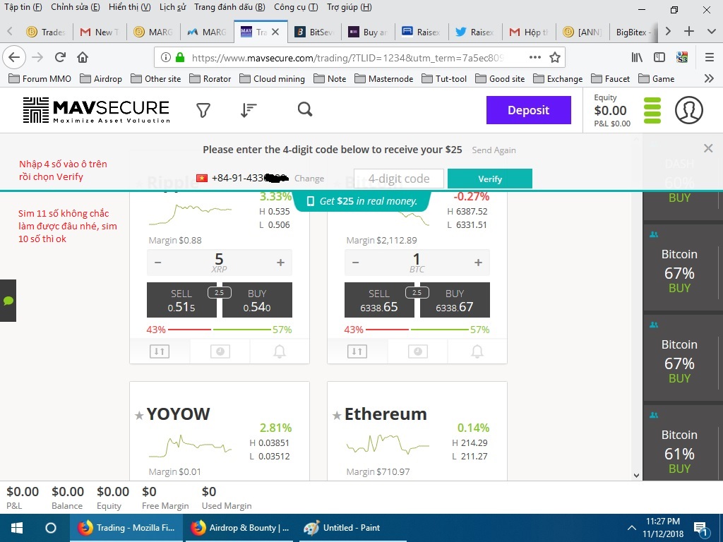 Anh em tham gia ngay nhé, khi đăng ký dùng số điện thoại khác, và sau khi active dùng thêm số khác để nhận 25$ nhé..sẽ cập nhật sau
