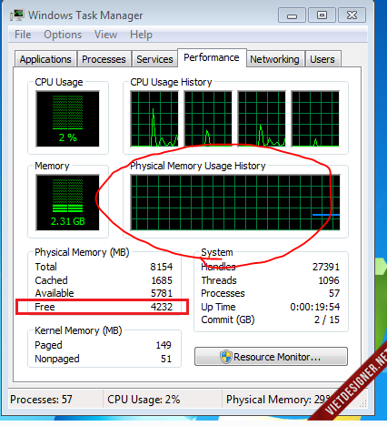 Còn RAM thì ở chỗ Physical Memory, phần Total đó: 8154 MBs. Đủ 8GB luôn