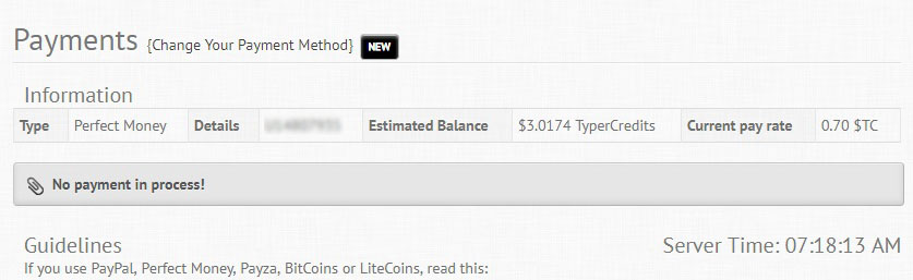 Trước có khi nào nó hiện "No payment in process!" không bạn? Xem tình hình thế nào chứ lập lại làm mà không công thì phí ^^trc là thứ 3, h nó đổi lại thứ 5, mà tầm 5-7 ngày nó mới trả tiền cho mình, mình thì mới làm lại, nó rs cho mình 3 lần vào thứ 5, nên canh làm đủ 3$ trc , rùi đổi acc, k khéo bị ban uổng công thôi
