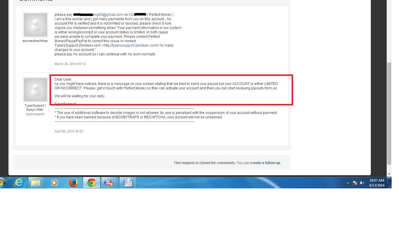 Đã thành công 1 vé ticket đòi tiền Mega cho 1 bạn trong forum nữa sau nửa tháng ticket :D