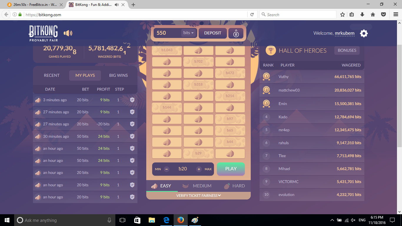 Here at BitKong we are dedicated to rewarding our most loyal users, which is why starting now our biggest winners will win even more. Every week (at Sunday 00:00 GMT) our Hall of Heroes will get MASSIVE rewards:
