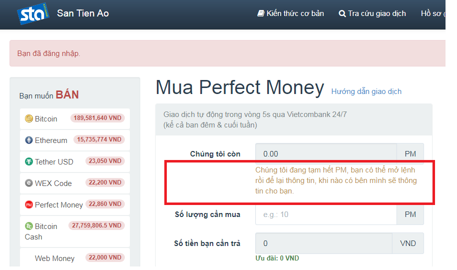 Xin lỗi vì sự bất tiện này, mình sẽ pay ngay sau khi trao đổi được Perfect Money nhé.