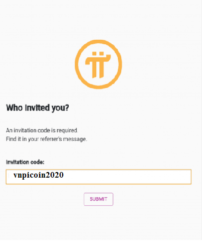 Bước này cũng là bước cuối cùng khi đăng ký Pi cũng là yêu cầu bắt buộc. Ở ô Invitation code họ yêu cầu bạn phải điền user name của người đã giới thiệu bạn tới với mạng lưới Pi Network.