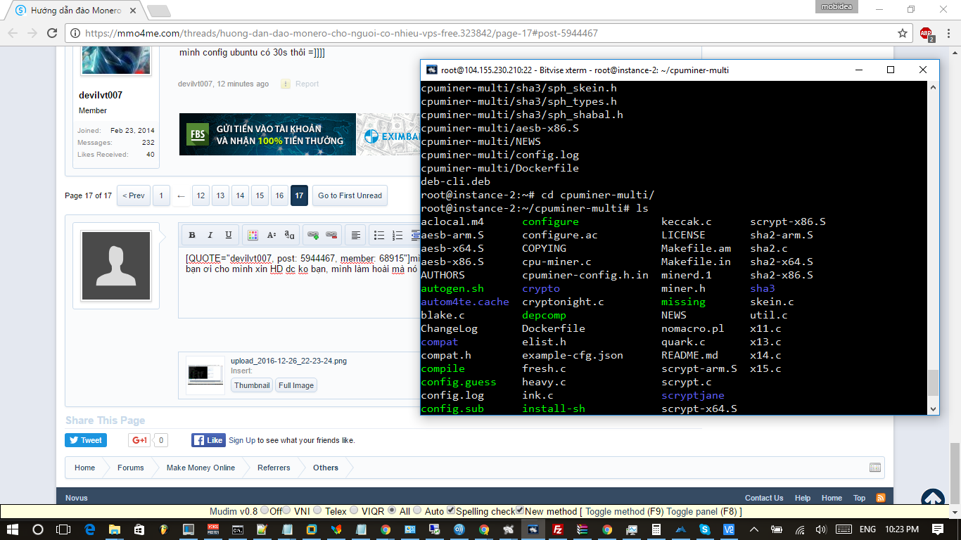 các bạn ơi cho mình hỏi nếu cày trên ubuntu thì làm thế nào mới chạy dc mình nên cài GUI cho vps hay chạy trên terminal luôn ạ, mình mò hoài mà chưa làm dc gì cả, các bạn cho mình xin cái hướng dẫn chạy trên ubuntu với thank các bạn