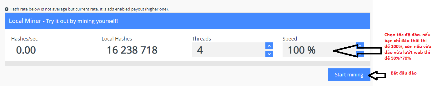Ở đây, sau khi đào bạn sẽ lấy được 99% số coin. khi chuyển coin về ví của bạn thì sẽ mất phí là 0.01 MINTME
