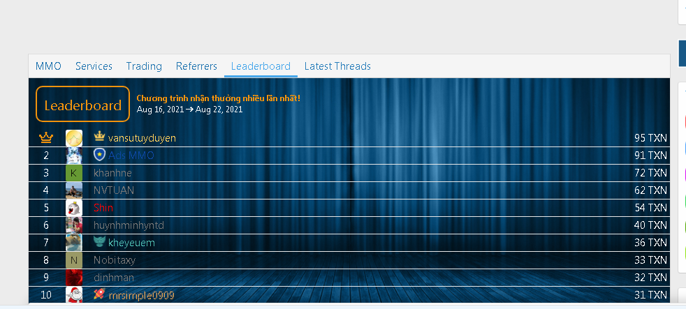 Forum cập nhật thêm mục "Leader board". TXN là gì vậy nhỉ?