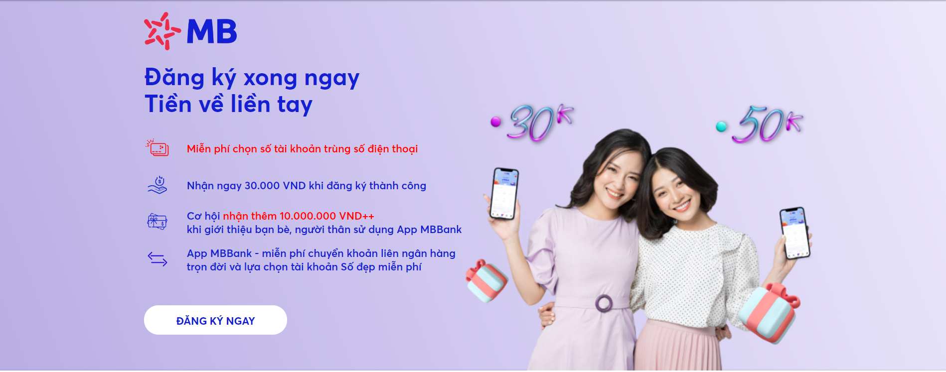 New Mở tk MB số đẹp, nhận ngay 30k tiêu dùng và thêm 39 COGI trải nghiệm 1 tháng 9DNFT miễn phí