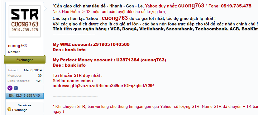 nhọ nhầm vs anh Cường chuyên mua str gì đó rồi bạn ah., 2 hôm trc e cũng bị ông này lừamua nick face hỏi a Cường mua str ah thì k phải đâu,chuển tiền xong bảo mai đua nick có cả sdt nó và cả nick yahoo đúng là tên Hậu gì đó ,gọi nó chặn biết là scam nên đành chịu.