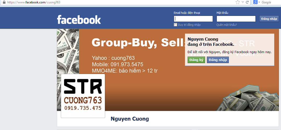 Như trên em muốn kiện thằng cường nguyễn763.. nó trung gian để mua bán fb chơi STR...e đã chuyển tiền cho nó.. chuyển song chặn fb, còn gài mồn cả.. thấy nó có đóng bảo hiểm trên MMO nên em xin adm giải quyết giúp em
