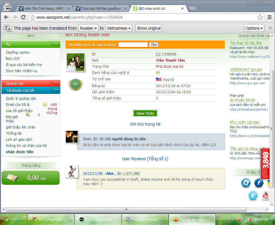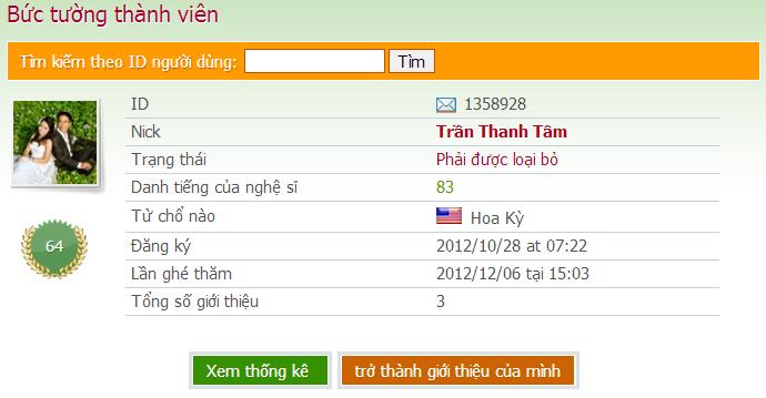 HÙ bạn là 5 acc bị ban thôi. Nếu chưa ân hận thì mình cho nốt 4 acc đang tuyển ref. Nhưng hãy xóa hết ref trc khi muốn mình làm điều đó. K mình lại mang tội. Bạn vẫn ngông lắm. Ếch ngối đáy giếngCác bạn bị sao vậy? xem kỹ lại chưa ạ, các bác tin vào lời nó nói thật là nguy hiểm quá đi ạ, cái comment lúc đầu của mình là vì nó nói chuyện mình sửa hình comment của nó nên mình nói cái đó là mình đùa, còn cái lập topic là thách thức chú ấy thật ạ, chả có bao giờ ân hận đâu ạ =))