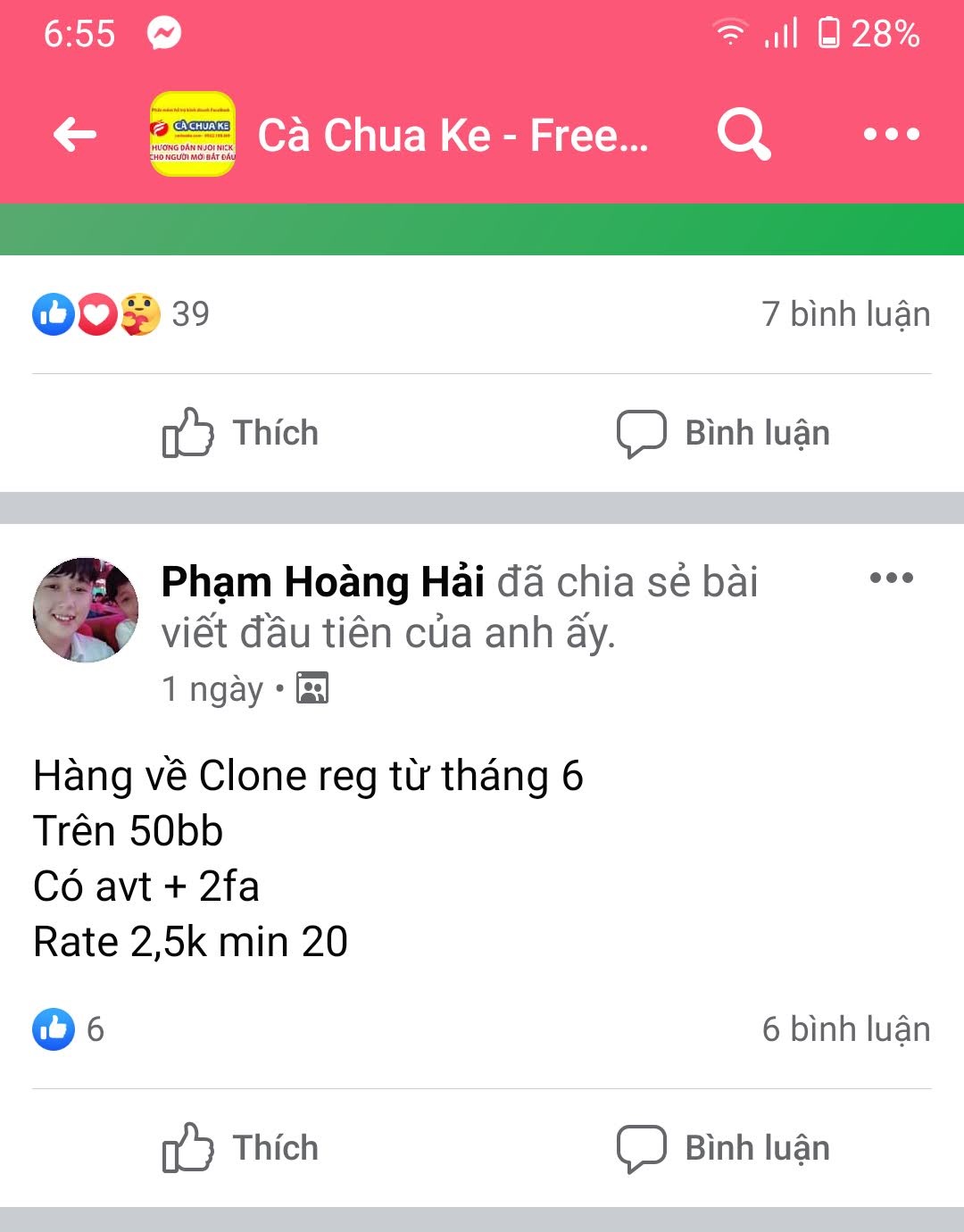 thằng này rao bán FB clone, nick có vẻ lâu năm nhưng scam 50k