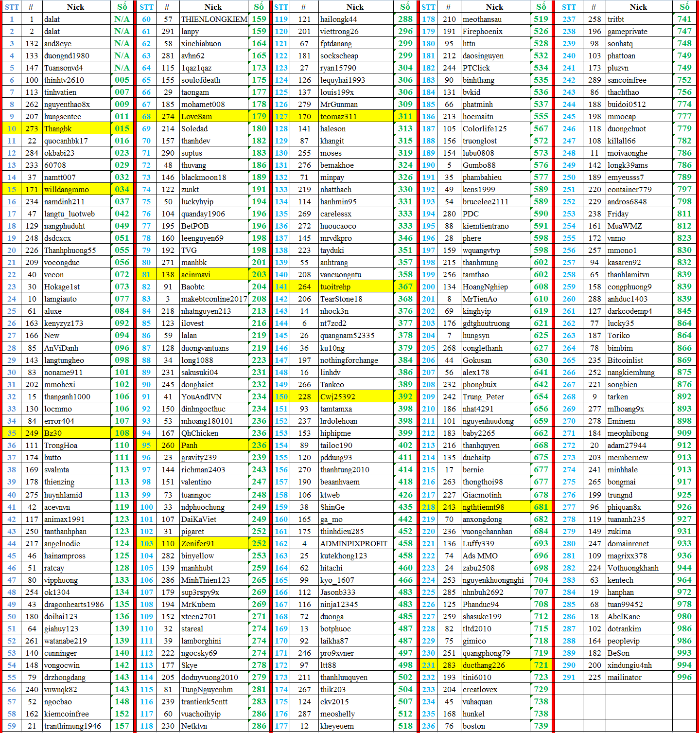 Đã hết giờ chọn số, mình đã lọc kết quả của mọi người chọn, sort rất dễ đối chiếu, chỉ cần có kết quả sẽ biết được người trúng giải. Mọi người cùng chờ so sánh với kết quả nhé