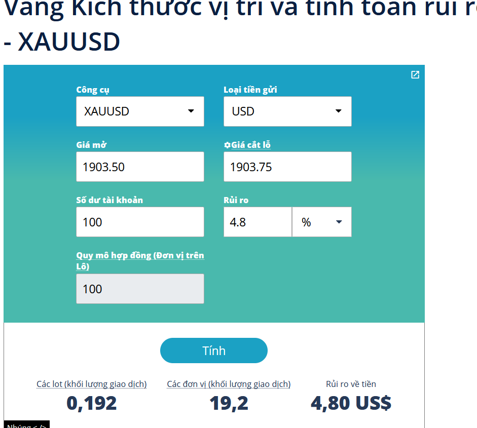 Do rủi ro là số lẻ đấy bạn (4.8%), bạn làm tròn xuống hoặc lên số thập phân thứ 2 là được (làm tròn xuống 0.19 lot hoặc tròn lên 0.2 lot)