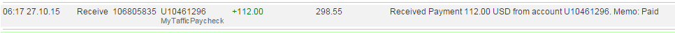 26.10.15 14:34 Receive Received Payment 6.2 USD from account U10461296 to account U8925770. Batch: 106723292. Memo: API Payment.