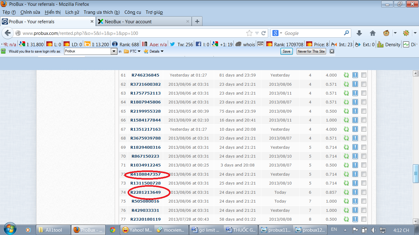 Demo: [Buy] Acc neobux > 1 năm - Giá thỏa thuận - Ngân hàng giao dịch