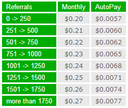 Nếu bật Autopay thì giá để giữ 1 ref thêm 1 ngày là 0,0057$. Nếu ref đó click đều đặn trong 30 ngày thì sau 30 ngày ref đó vẫn còn nguyên 30 ngày thuê tương ứng với việc gia hạn 30 ngày cho ref đó là: 0,0057 x 30 = 0,171 = mức giảm 15% so với thuê mới.