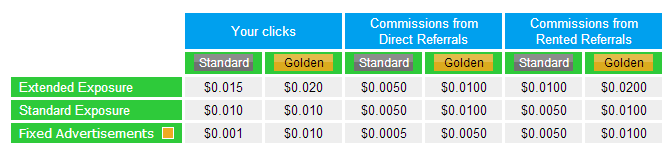 - Bạn nhận được 0,005$ với mỗi click mà ref thuê click (thành viên miễn phí: Standard)
