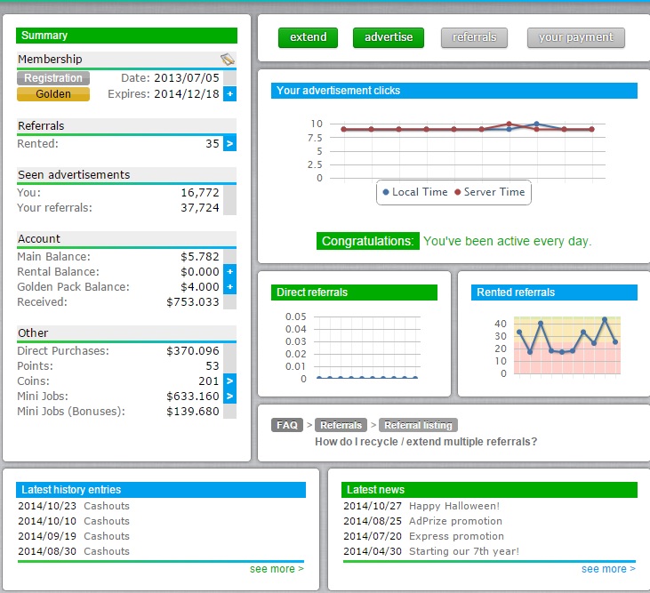 Bạn có thể xem lại những trang trước, sẽ thấy được thông tin có ích cho bạn. Mình khuyên bạn gia hạn ref 240 days, standard member kg nên thuê quá nhiều ref, hãy theo dõi clicking pattern của rr daily và recycle những rr bạn thấy sẽ kg mang lại lợi nhuận cho bạn, mình recycle rr 2% daily. Bạn nên làm mini jobs sẽ kiếm được nhiều hơn là đầu tư vào rr.