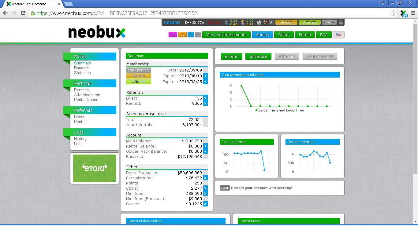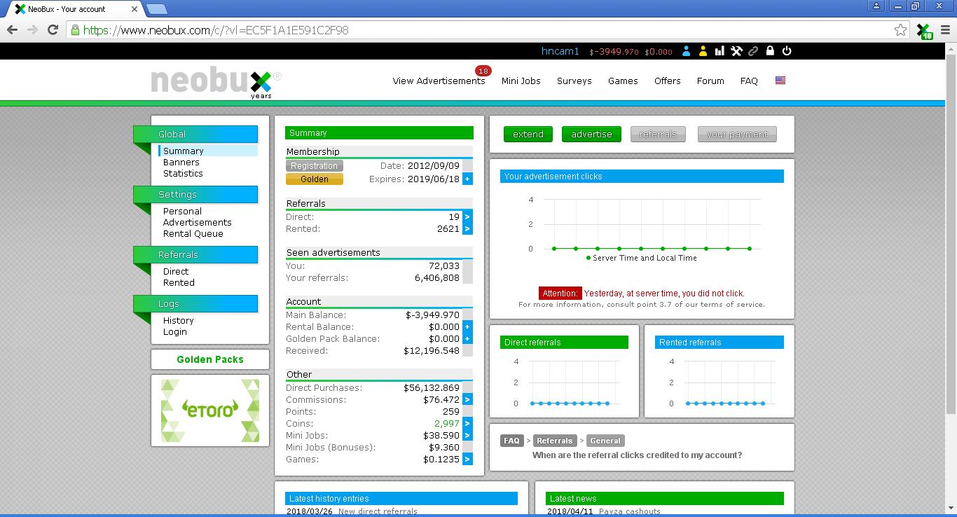 Quan trọng là đầu tư vào rr phải có một chiến lược recycle thích hợp để avg ko bị giảm, chứ bác chủ thớt toàn nói theo hướng tiêu cực. Tôi chỉ bỏ ra số tiền 30$ ban đầu vào neobux và bây giờ tôi đã có một chút lãi với 500rr. Nếu tiếp tục duy trì chắc chắn tôi sẽ có thêm thu nhập đáng kể từ trang này.