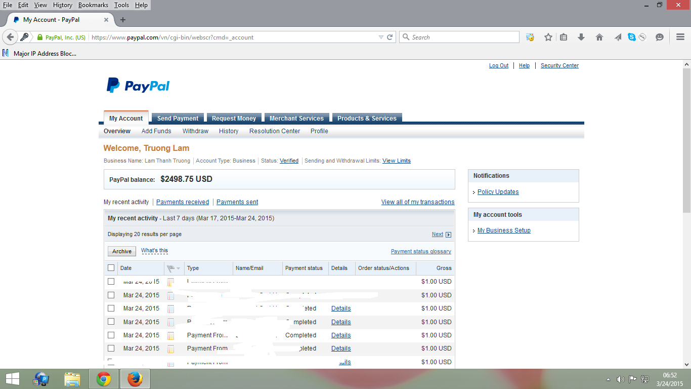 Viêc bạn bán paypal bị limit là lỗi của bạn. bạn có trách nhiệm refund lại cho người mua nhé. Bạn nên gửi tiền trung gian trước nếu bạn thật sự muốn refund . Còn ko muốn thì xác định nhé. Theo mình nên tạm thời banned @@ngovanlanh khi nào bạn ấy gửi tiền trung gian thì bạn ấy mới thật sự có ý định refund . Closed topic.