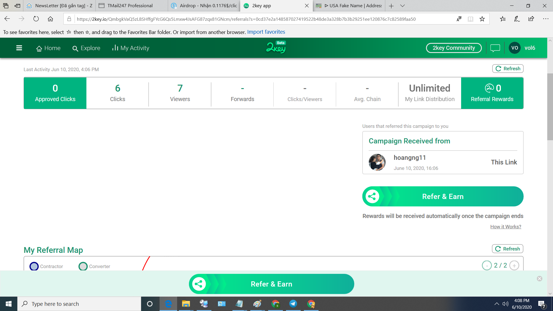 nếu cheat thì click vào open link hay click vào Refer&Earn thì mới được tính là Conversions