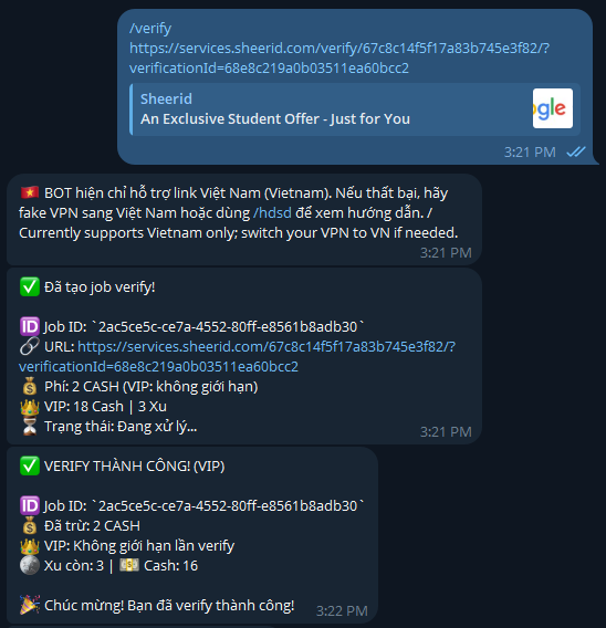 Nhận gói Google AI Pro + VEO 3 miễn phí trong 1 năm bằng cách bot Telegram "bắt nạt" SheerID thay mặt bạn. Vâng, nó có hiệu quả. Vâng, nó thật sự lười biếng. Vâng, chúng tôi thích nó.