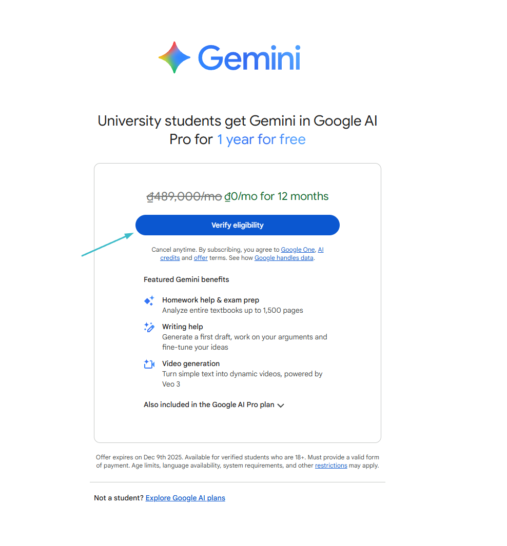của bạn : Gemini 2.5 Pro Deep Research VEO 3 Dung lượng lưu trữ 2TB Không giới hạn Không cần tài liệu Không rối