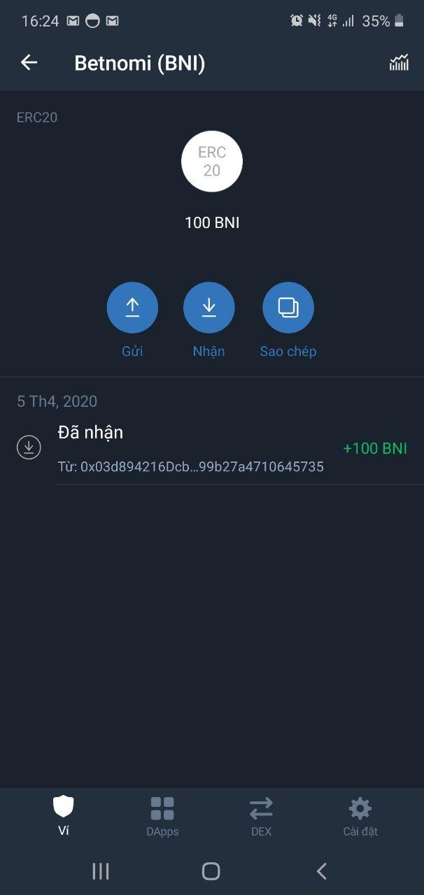 Hello anh em lại là mình nha, hôm nay hướng dẫn anh em nhận 250BNI khi tham gia Betnomi Airdrop . Betnomi là một nền tảng chơi games online dạng mấy games basic giết thời gian . Nhu cầu chơi games thì ai cũng cần nên có thể con này sẽ ngon sau khi IEO . Lần trước có 1 anh em đã post rồi nhưng BETNOMI nó mới Update rule và điều chỉnh bot cũng như fix lỗi bot rồi anh em tham gia cho vui nhé . Lần trước mình cũng tham gia khi rule của nó cho rút trực tiếp sau khi hoàn thành Airdrop và min rút lúc đó là 100BNI . Nhưng nay nó đã thay đổi min rút thành 250BNI có nghĩa là bạn phải cần ít nhất 3 Referal để đủ min và rút về ví ERC20 thời gian về ví là 24h . Mình vừa rút trưa nay mình sẽ Update cho anh em thông tin khi về trong 24h .