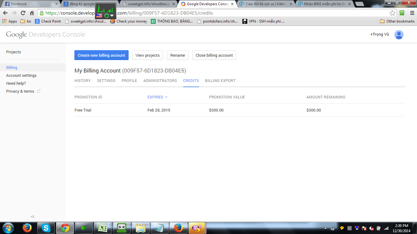 Vào lại phần quản lý tài khoản khung Billing chọn tab Credits sẽ thấy hàng nóng.