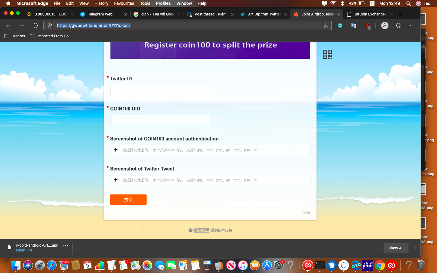 Airdrop nhận airdrop token 100T và DIPC tương đương cho 10000 người đăng ký, kyc thành công và điền form