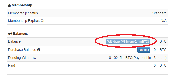 Hướng dẫn rút tiền về ví khi tài khoản đạt lượng min để rút (0.1 mBTC)