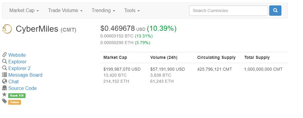 Đồng CMT được phát hành cuối năm 2017 và được đánh giá là 1 trong những đồng coin tiềm năng nhất 2018. CMT không chỉ đơn thuần để mua sắm trên 5miles mà còn được ứng dụng vào nhiều lĩnh vực trong đó là nguyên liệu để mua ICO nhờ tích hợp mo-dun hợp đồng thông minh tương tự như ETH, nhưng mạnh mẽ hơn ETH, giao dịch nhanh, phí rẻ. Điển hình nhất ta có ICO khủng ArcBlock dùng CMT để mua ICO, CMT sắp tới sẽ phát hành ví riêng và blockchain riêng