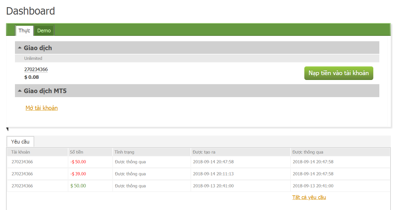 thắng trên 50$ Trade 2 lots dc quyền rút về VCB, DA....