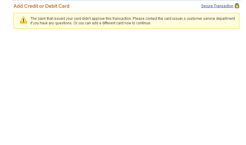 We are not able to process your payment using your PayPal account at this time. Please return to the merchant's website and try using a different payment method (if available).