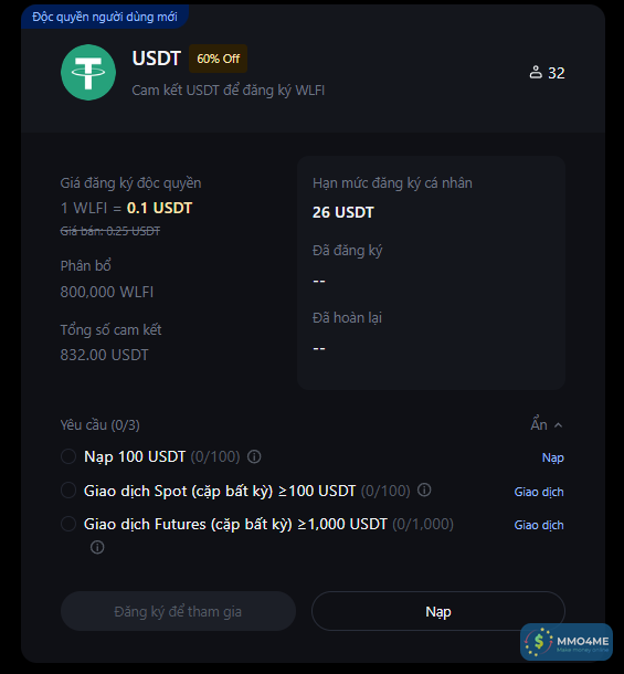 Hiện đang có các sự kiện vòng quay (Solana; TDS; WLFI; Lễ hội Fiat và META) trong đó Lễ hội Fiat và META là 2 event thưởng ngon, ngoài ra còn các sự kiện ẩn cho người dùng mới khác (mình chỉ đăng ký tham gia, khi nạp trên 100$ là có cơ hội trúng)