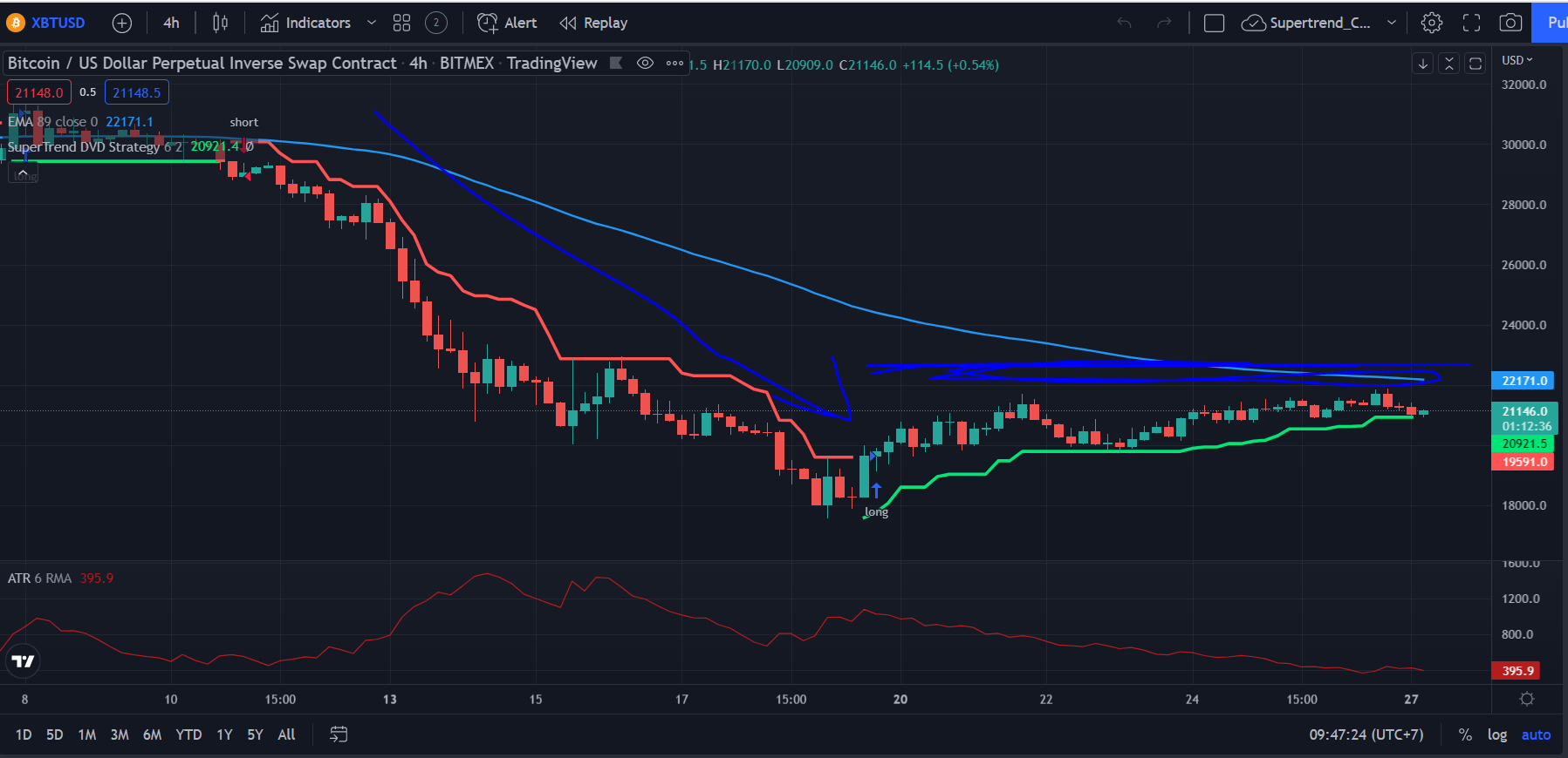 Vâng em giữ khoảng stoploss chỉ tối đa 1% so với giá, nên ATR mà cho trị số lớn hơn thì em cũng quy stoploss về 1% thôi ạ. Giá biến động theo ATR là đúng nhưng có những trường hợp giá chạy mạnh theo xu hướng nên em vẫn giữ quy tắc này. Các lệnh stoploss này coi như chi phí để bắt được lệnh dài kia ạ.mình thấy bác đanh btc mà sl ngắn quá nên dính sl, mặc dù đánh đúng xu hướng nên không gồng lệnh được
